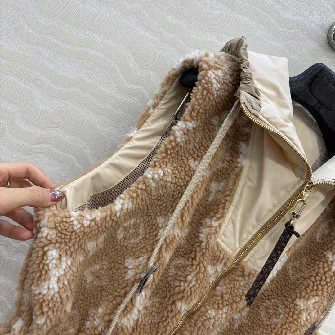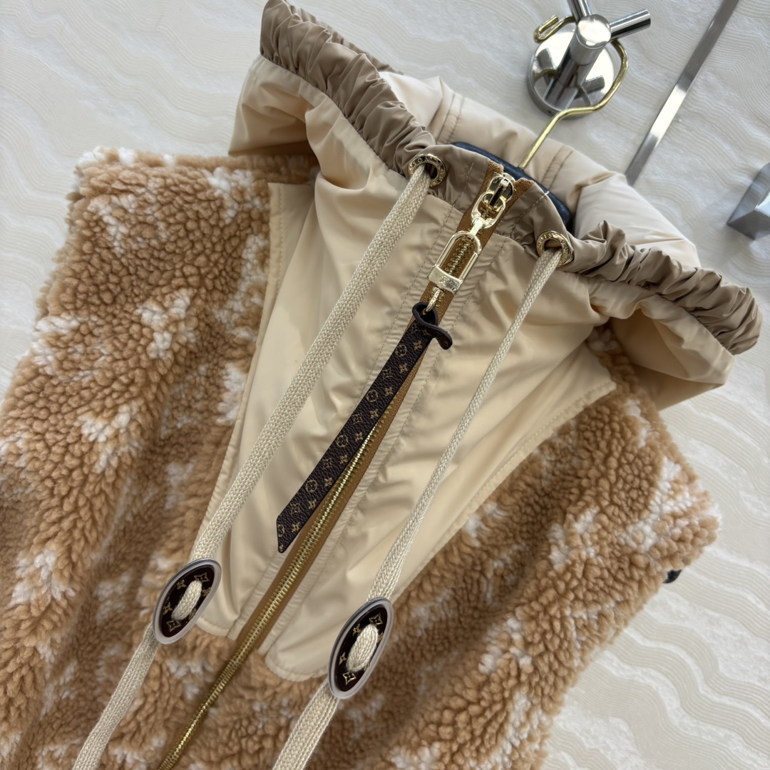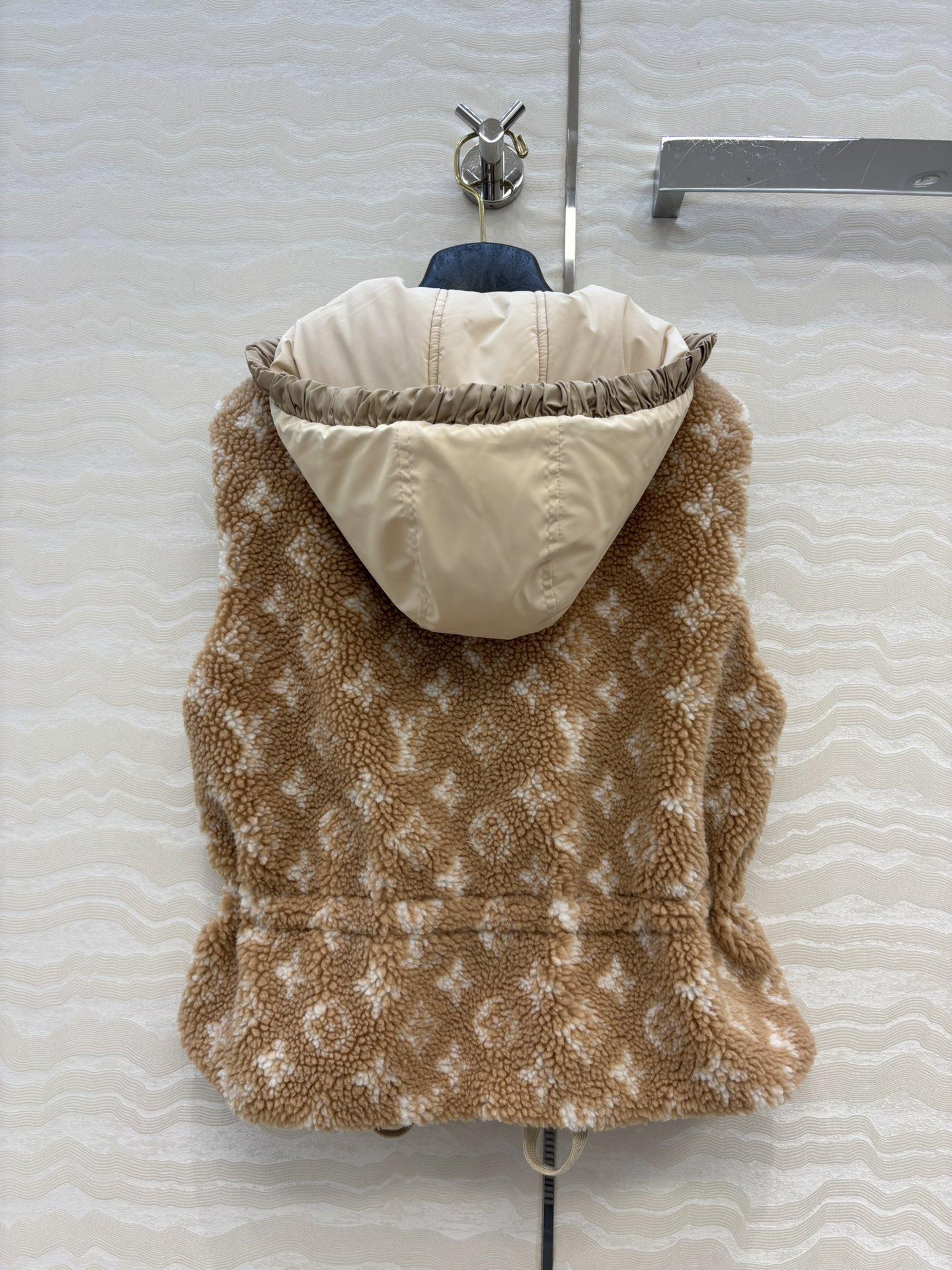 This adorable teddy bear hooded vest is a must-have for your wardrobe. Crafted from soft, plush fleece with a classic Monogram pattern, this vest combines comfort and style effortlessly.