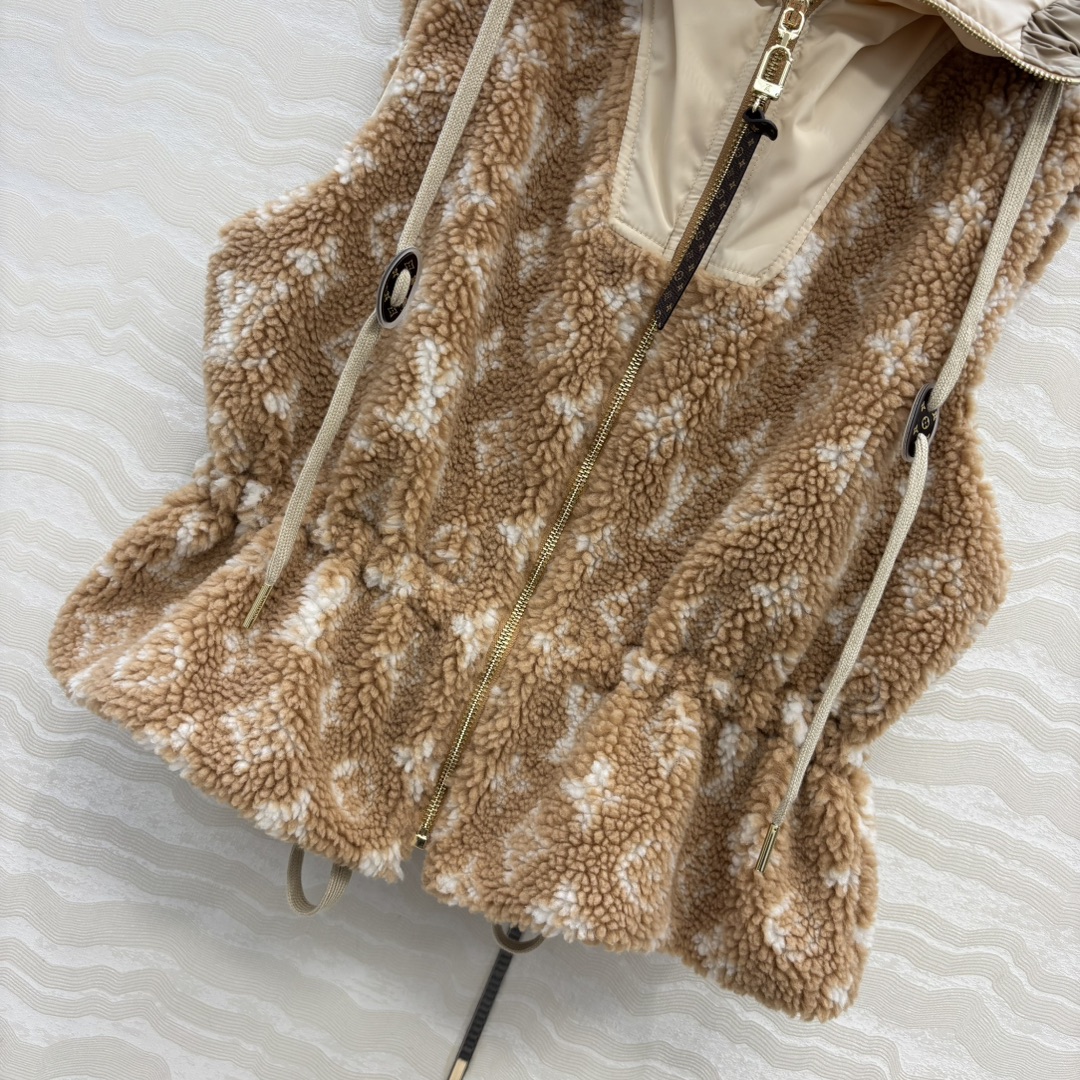 Tags: Drawstring Waist Vest, Fleece Vest, Hooded Vest, Layering Vest, Monogram Vest, Teddy Bear Vest