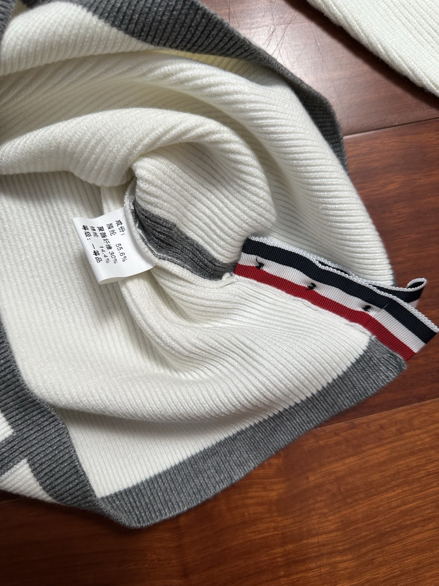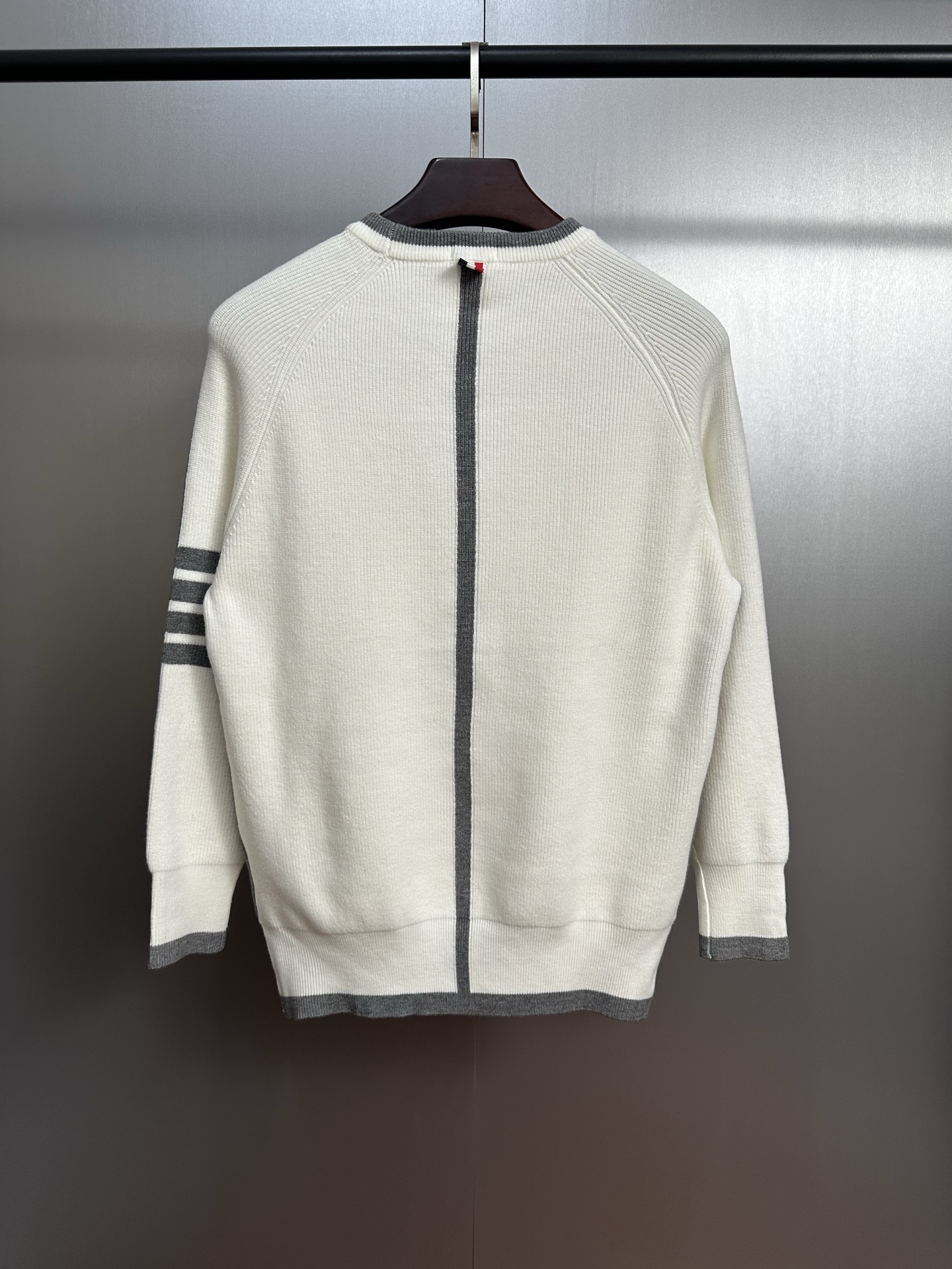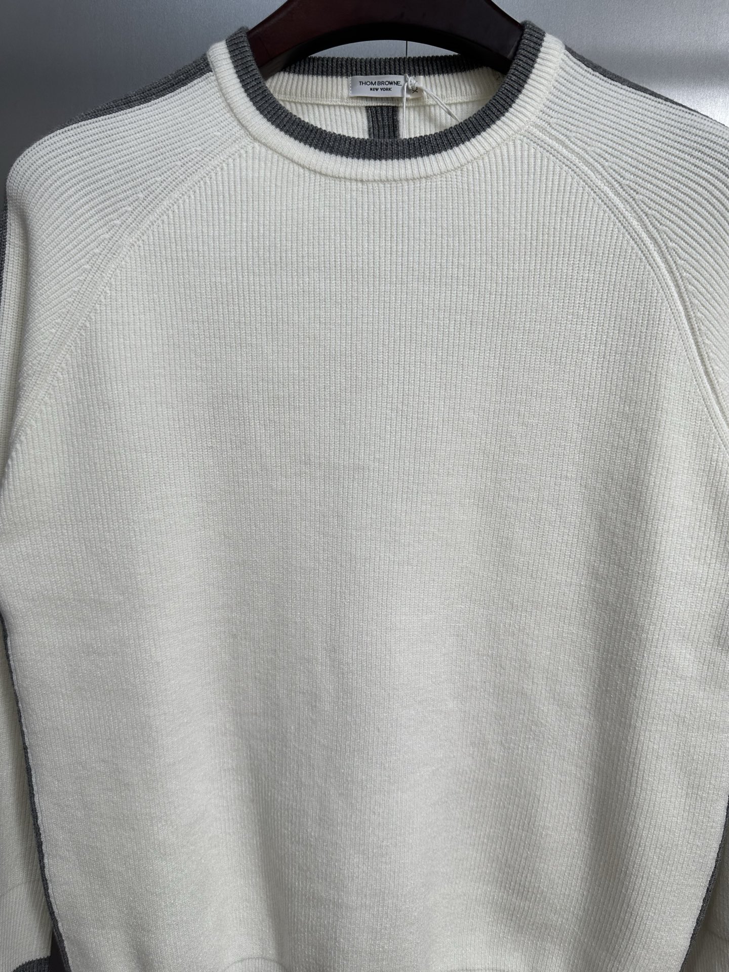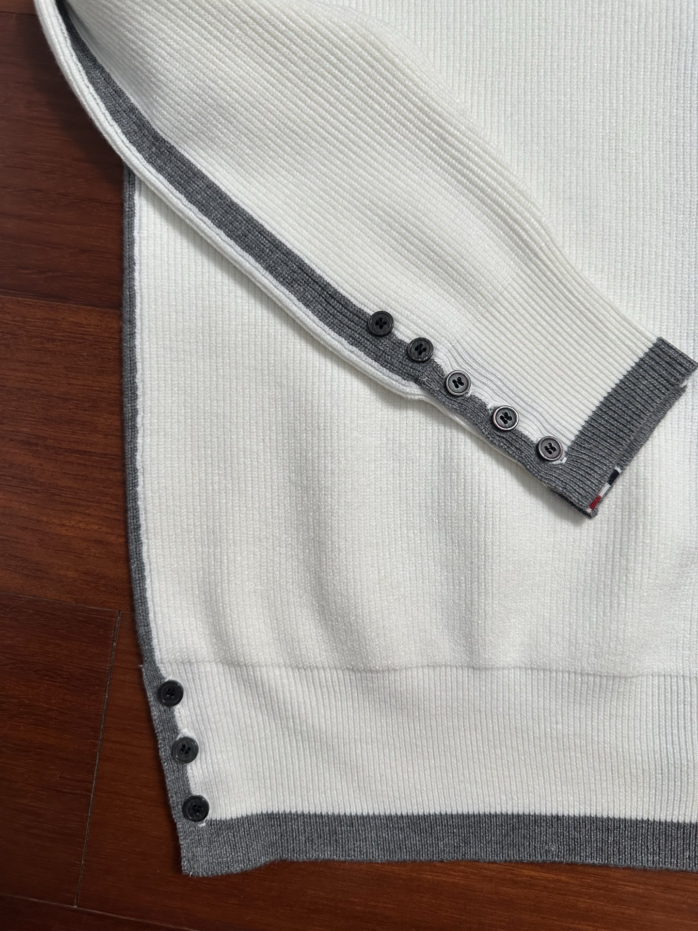 The Thom Browne sweater is a great addition to my wardrobe. I love the way it looks and feels. The striped detail on the sleeve is a nice touch.