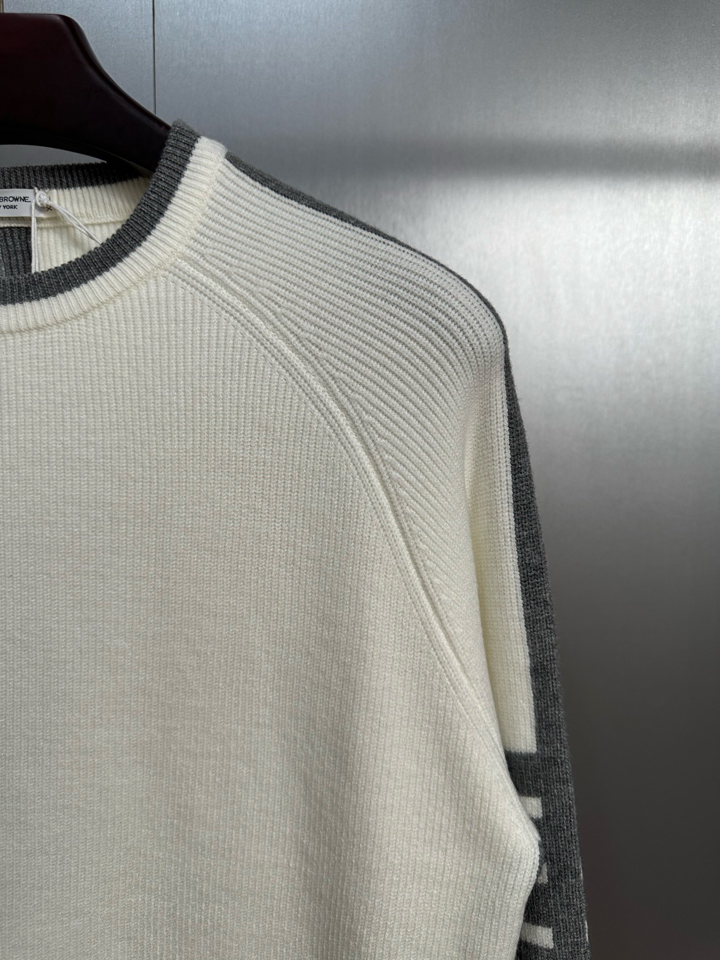 Tags: Button Cuff Sweater, Color Block Sweater, Crew Neck Sweater, Long Sleeve Sweater, thom browne knit sweater