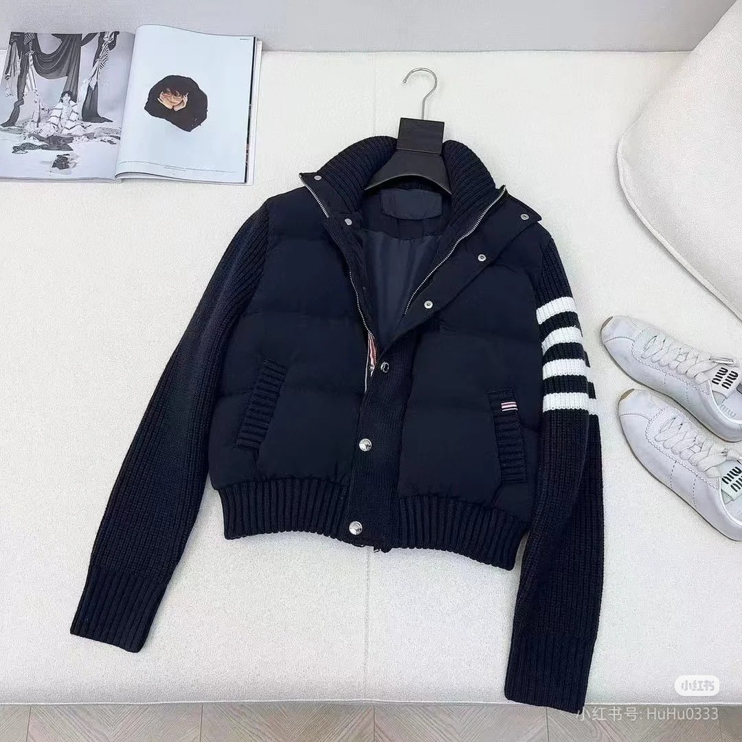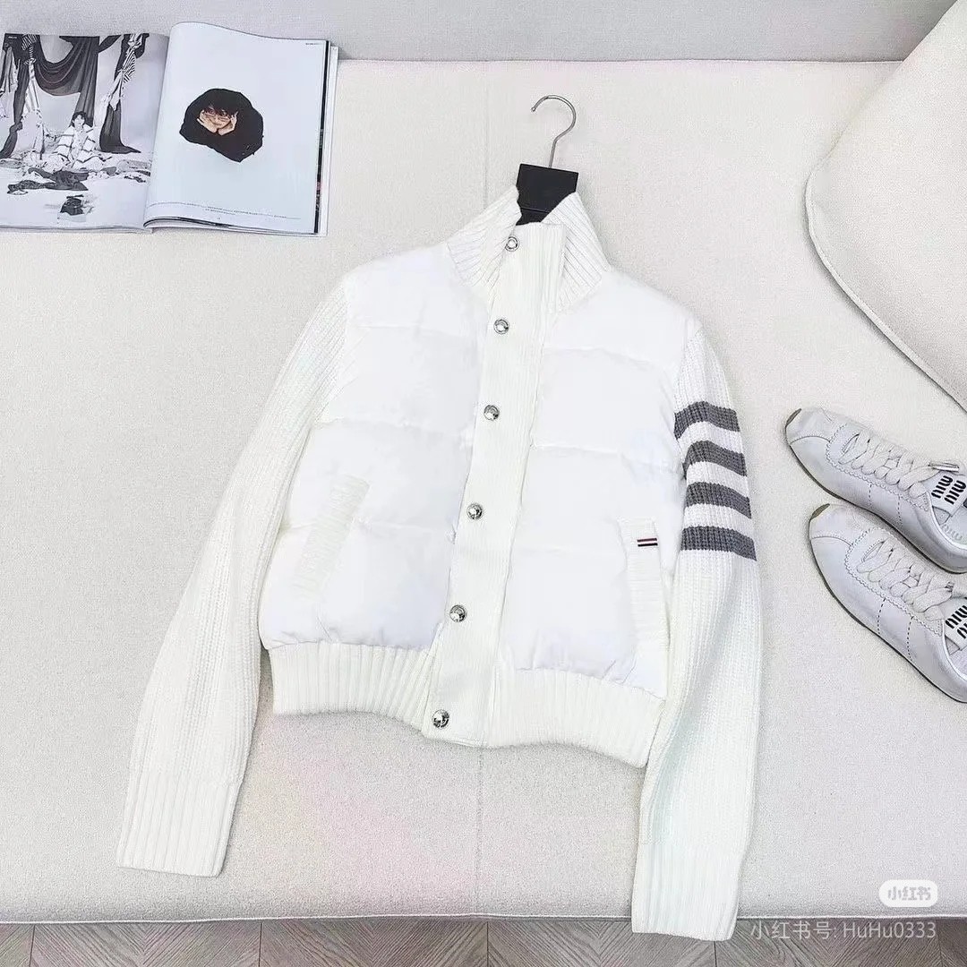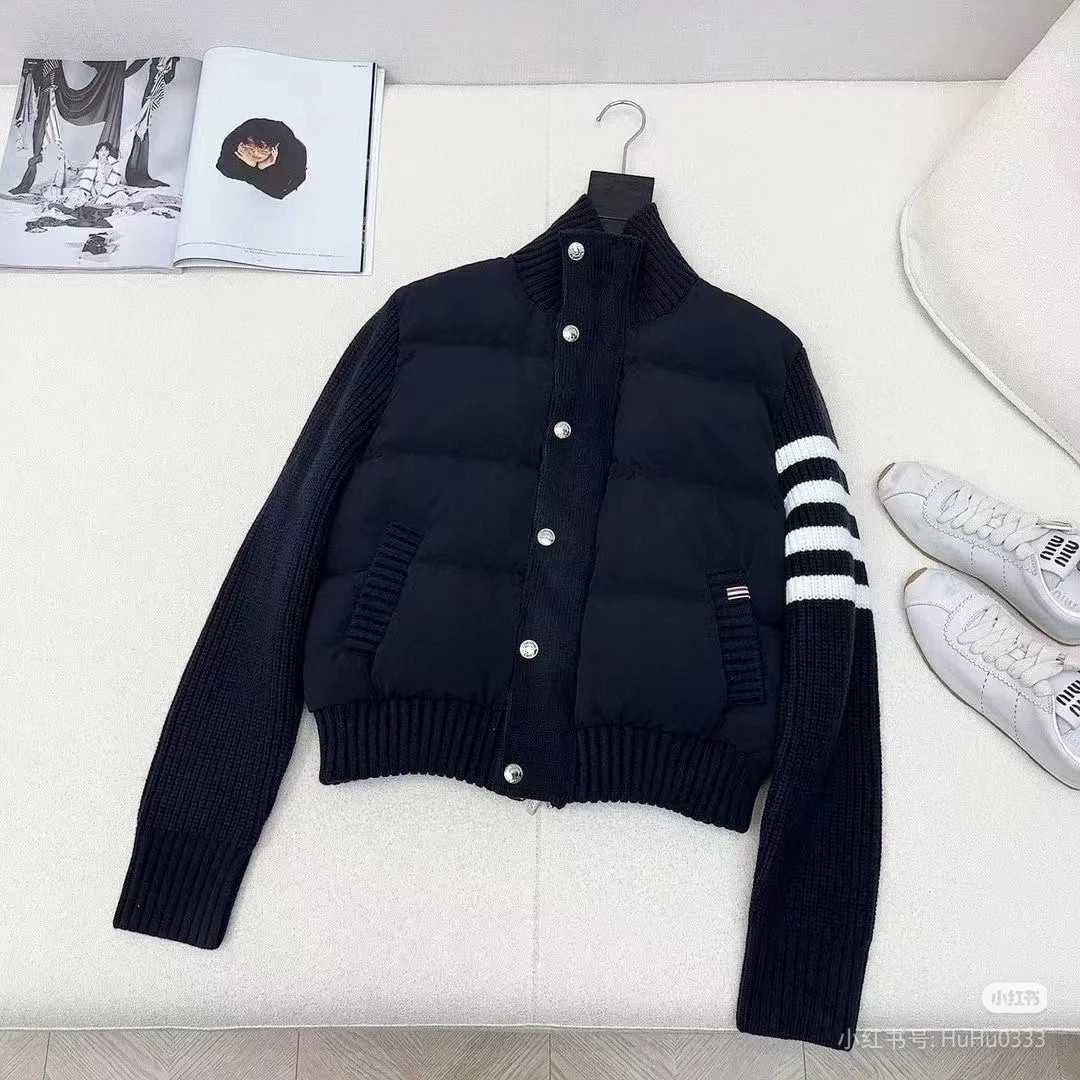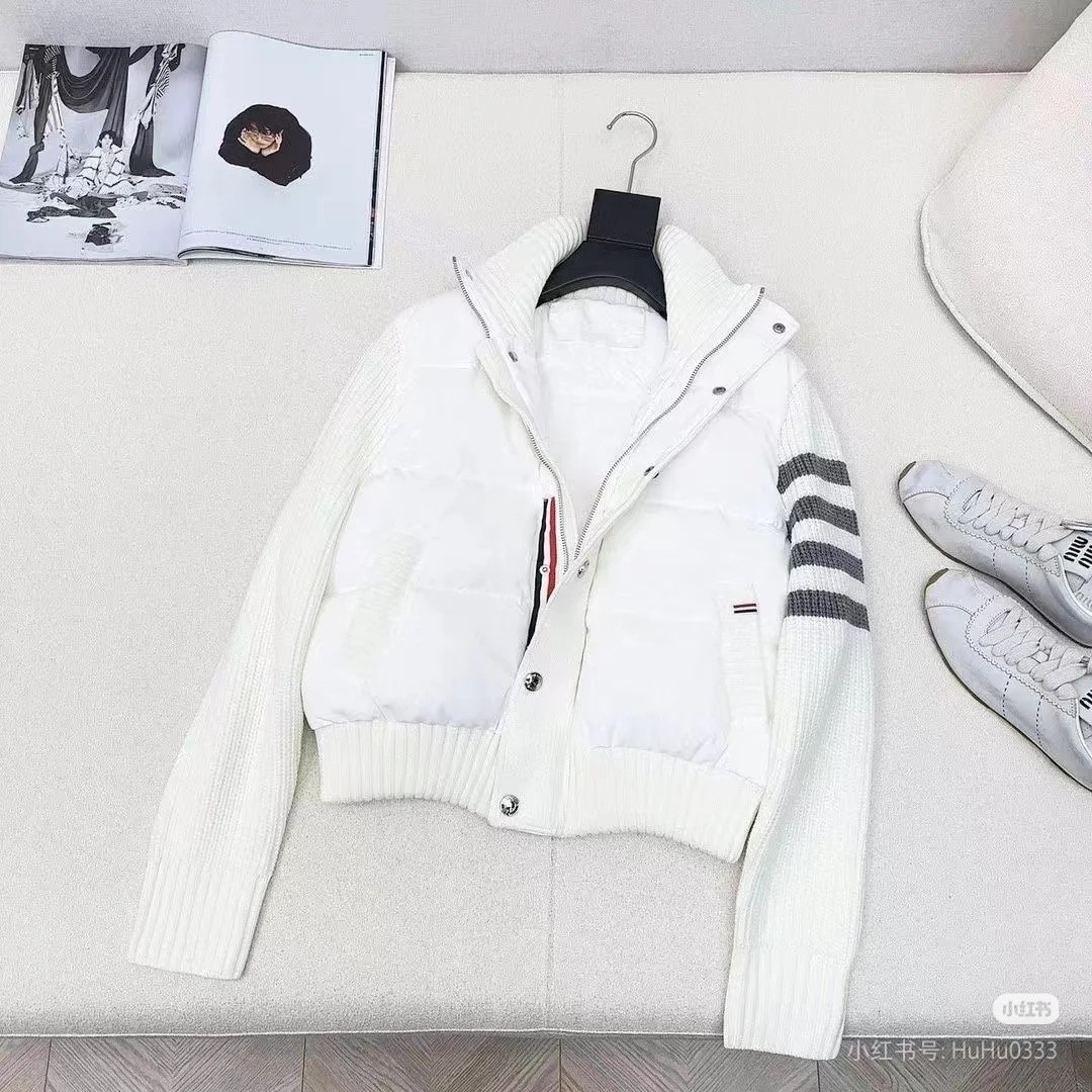 Tags: Designer Down Coat, Knit Collar Jacket, Striped Sleeve Jacket, Thom Browne Down Jacket, Women's Puffer Jacket