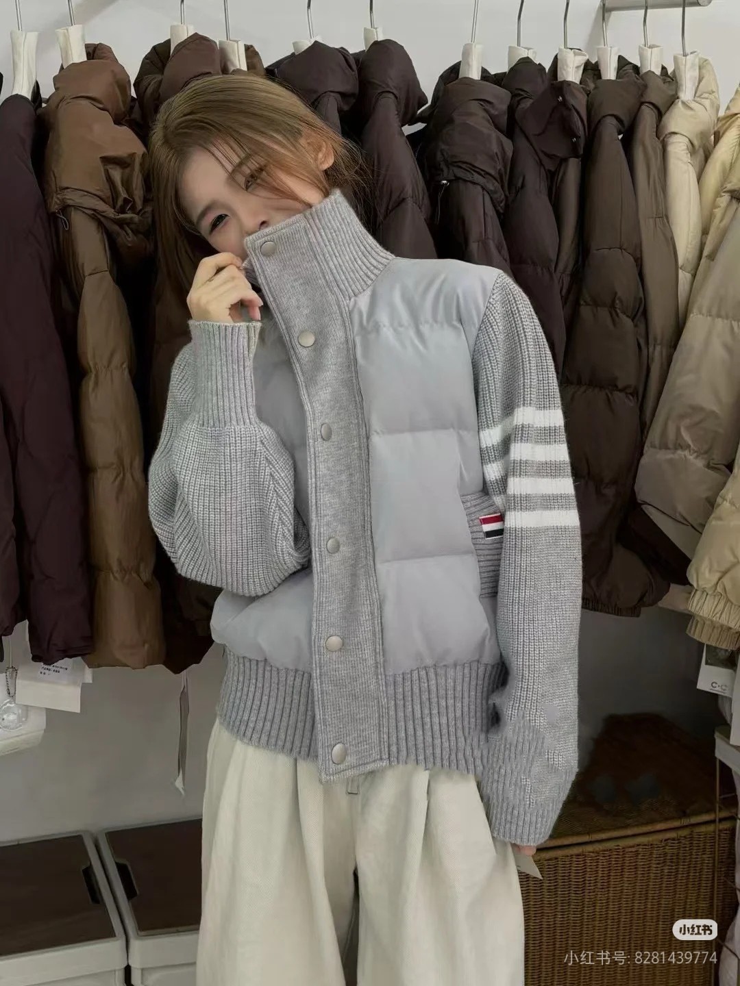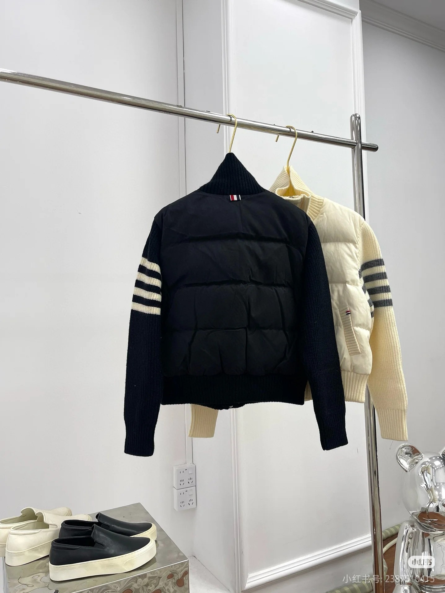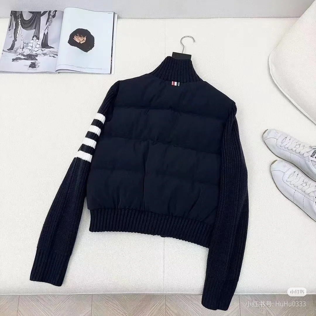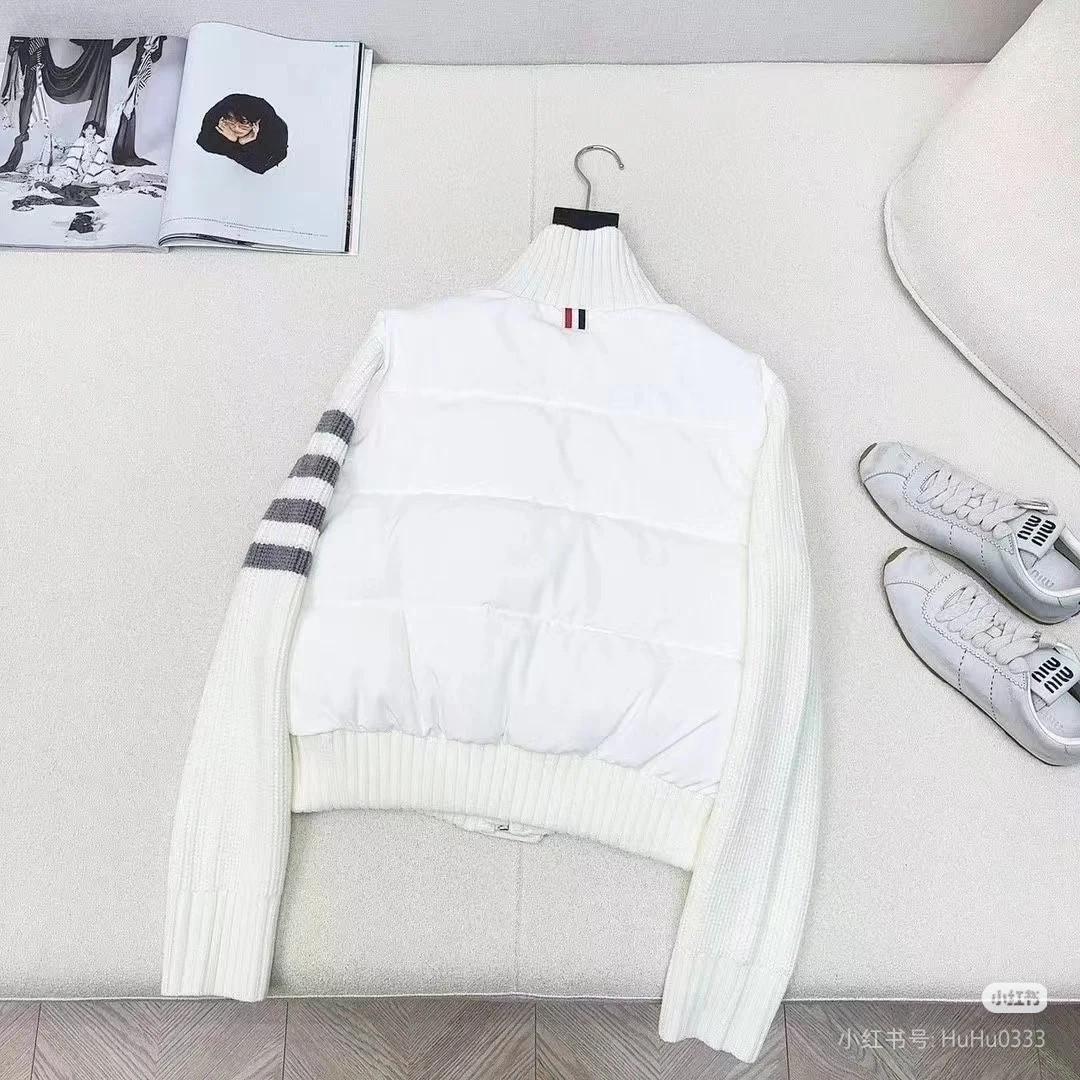 Tags: Designer Down Coat, Knit Collar Jacket, Striped Sleeve Jacket, Thom Browne Down Jacket, Women's Puffer Jacket