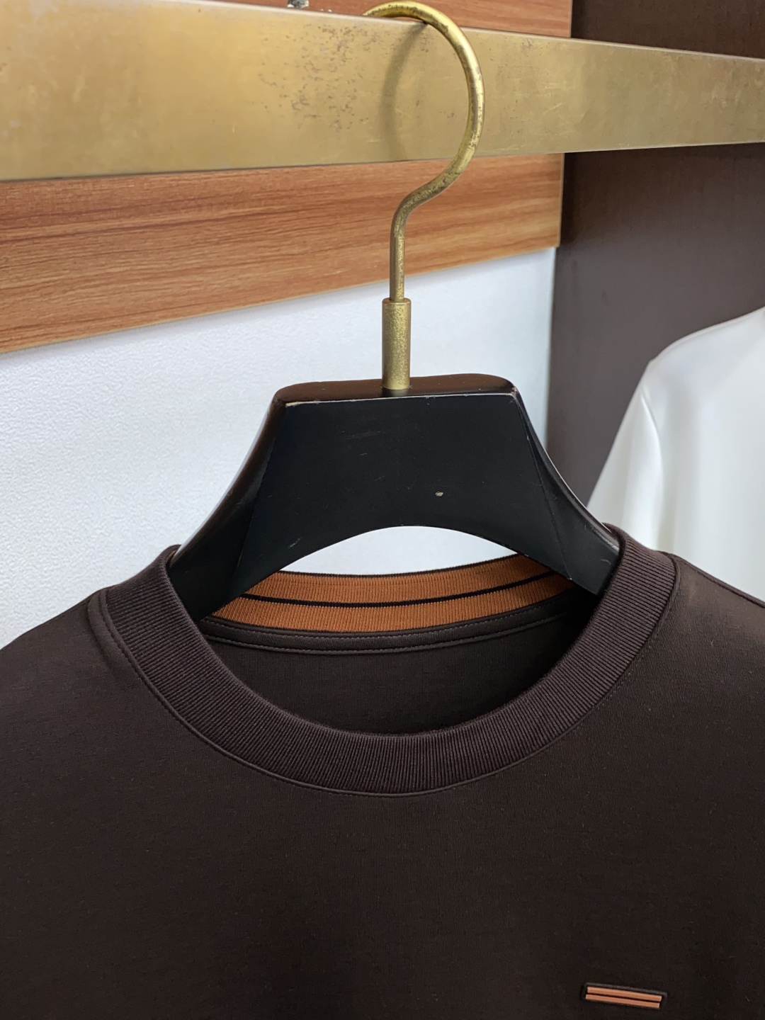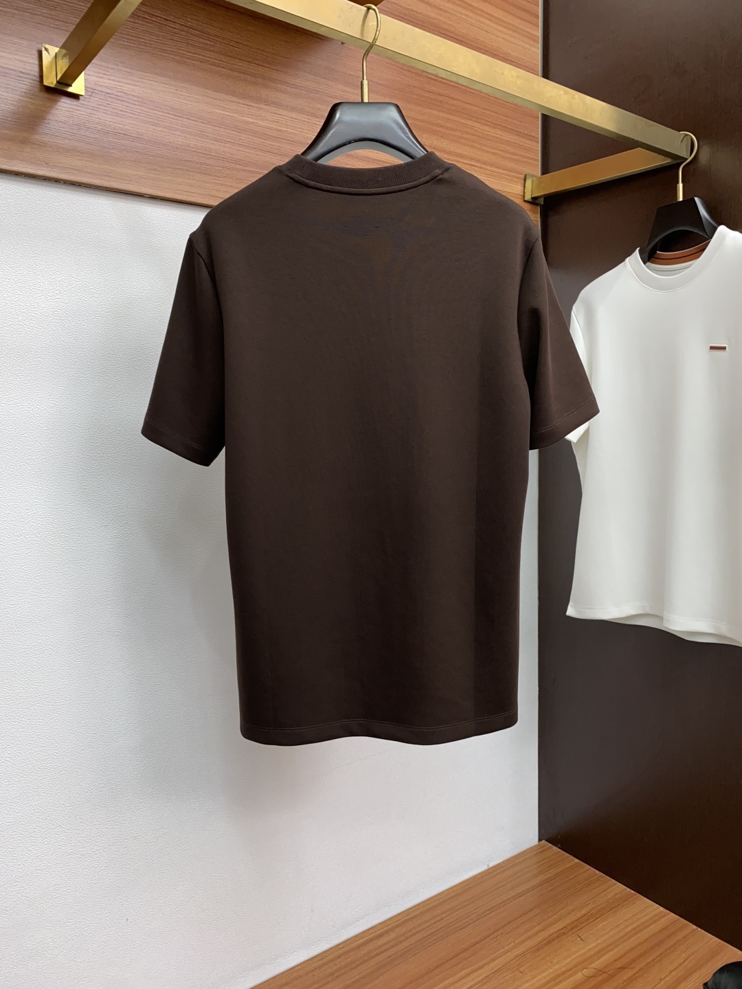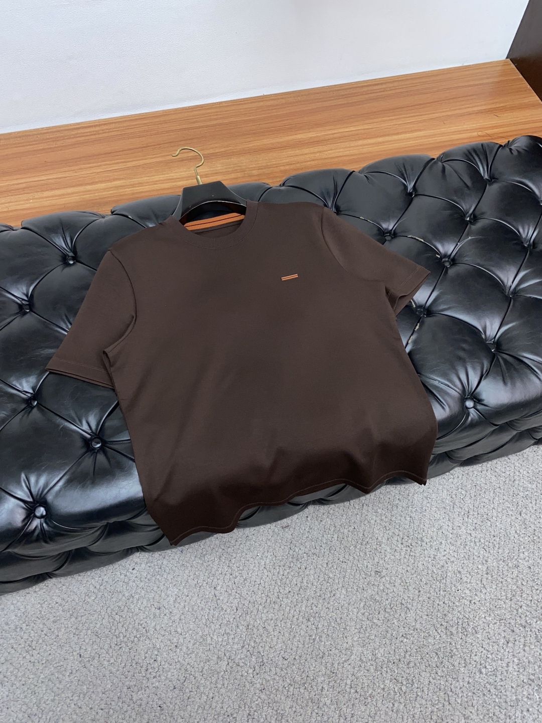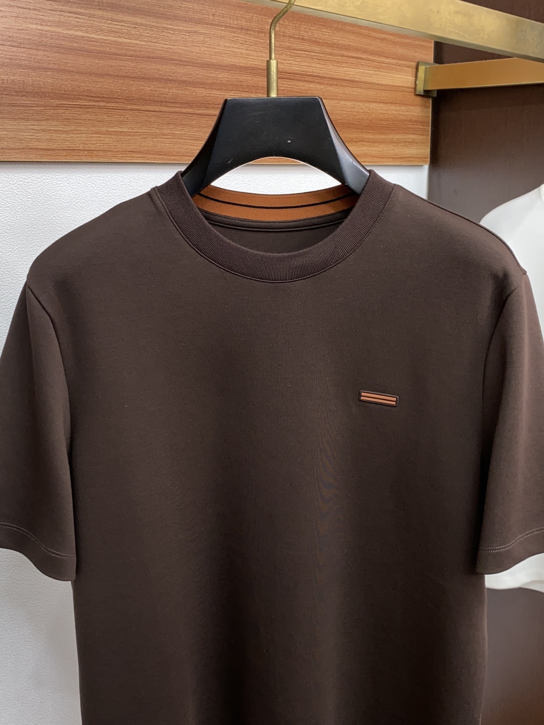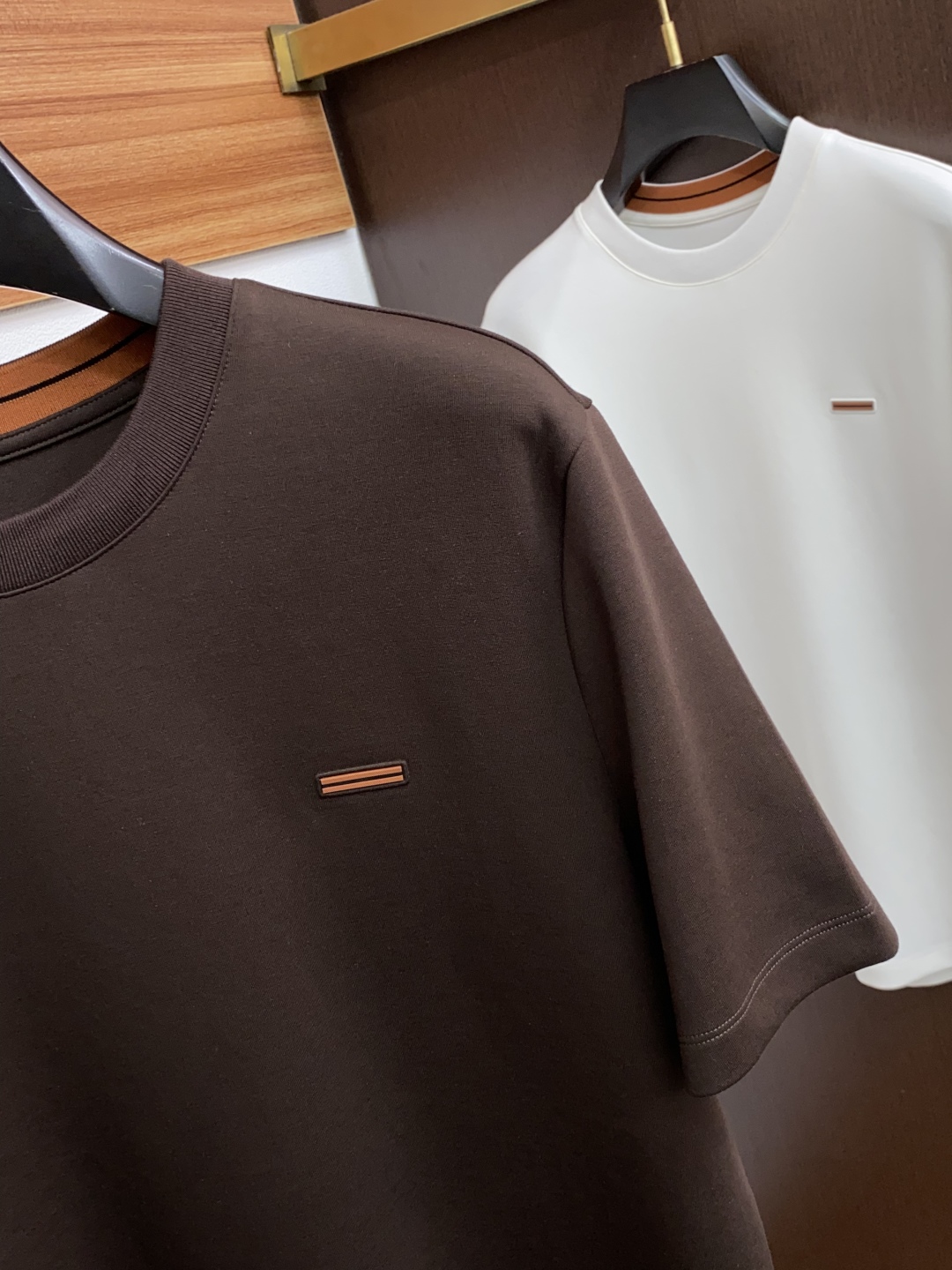 Zegna 2025 latest early autumn T-shirt, Italian imported double-sided cashmere cotton fabric, comfortable and soft. The brand embroidery design highlights the fashion.